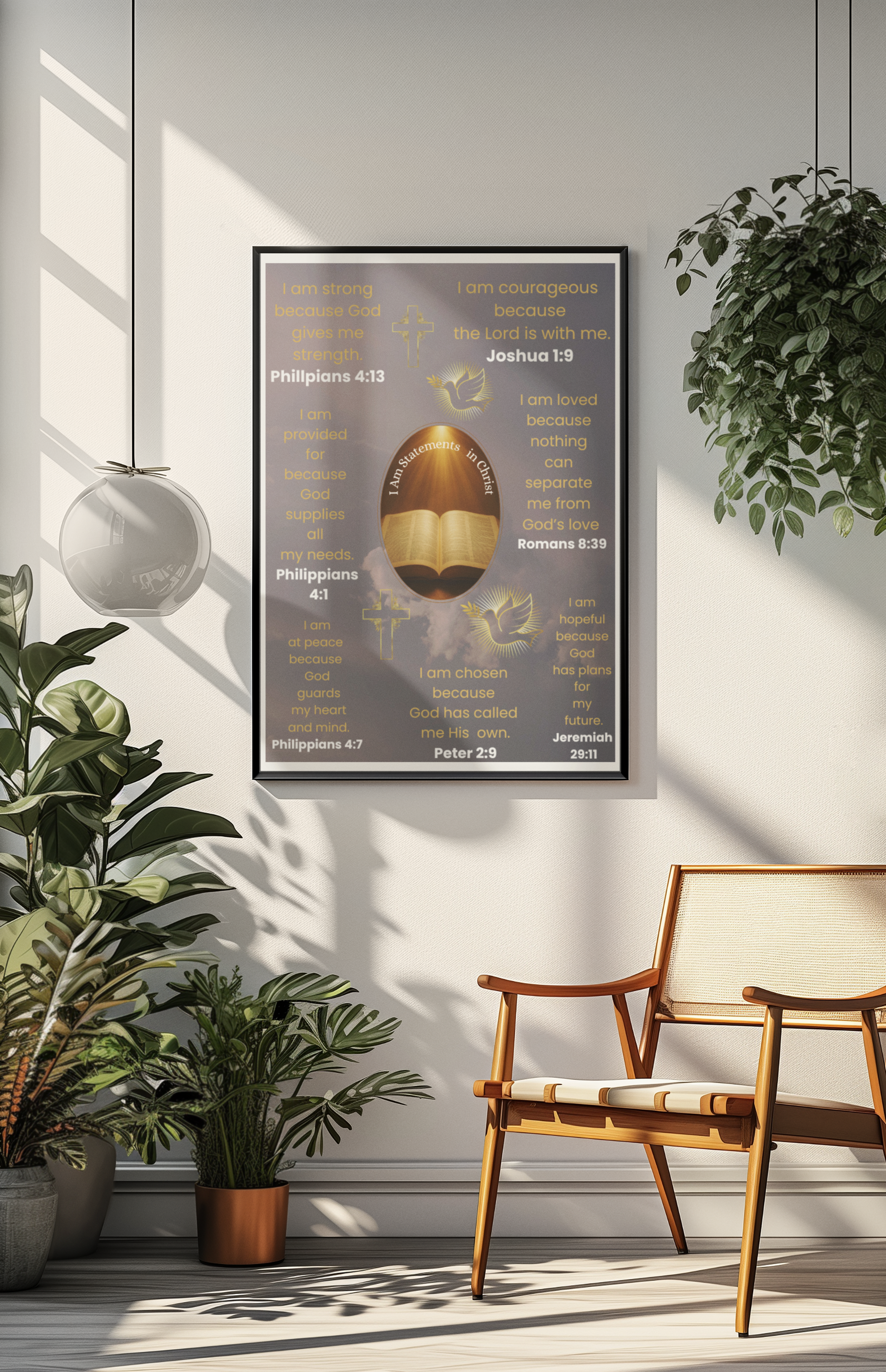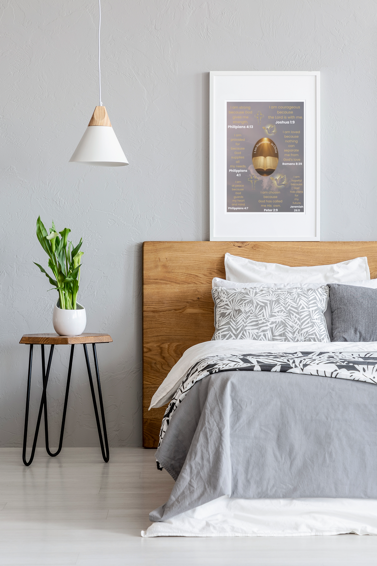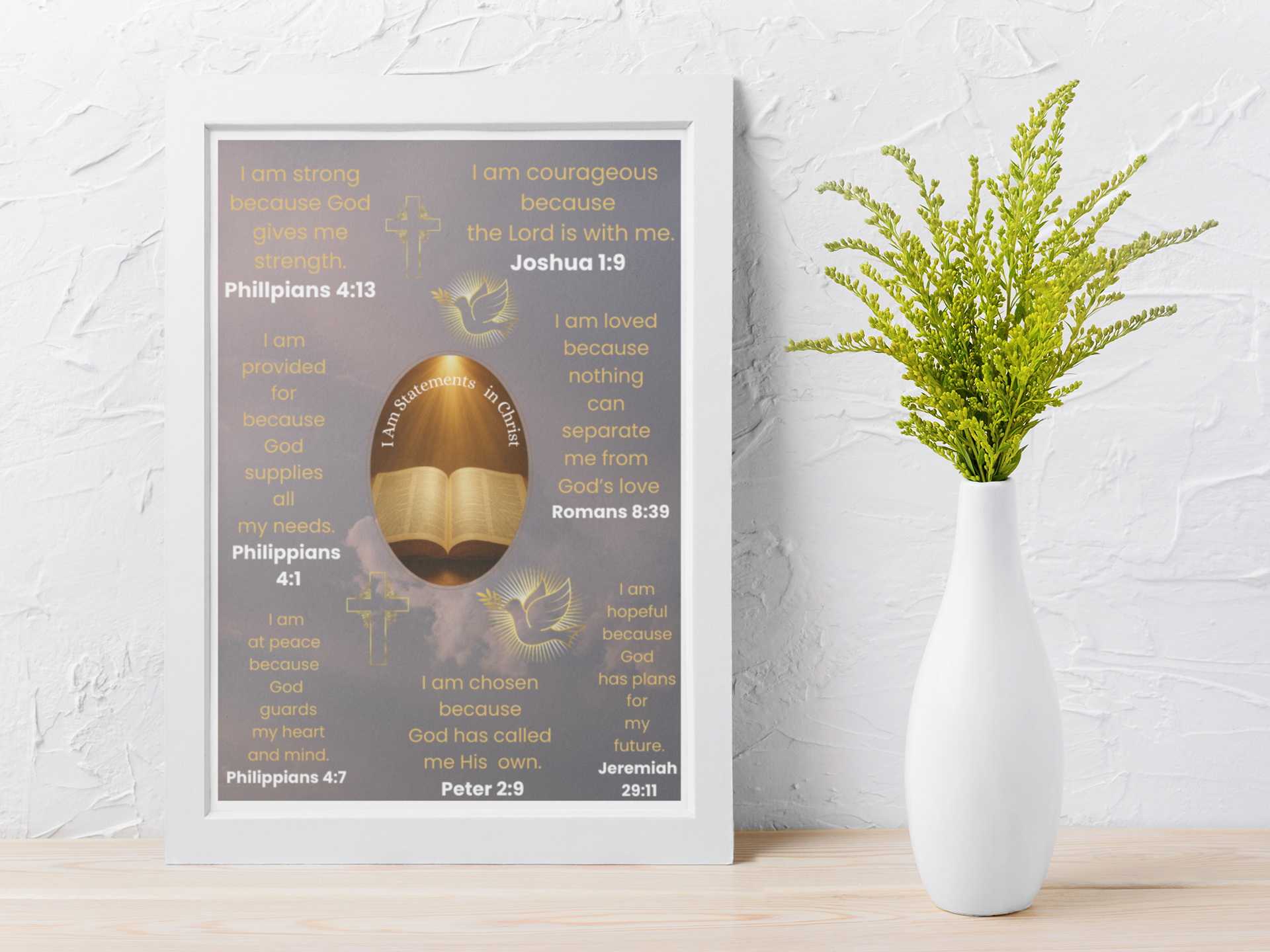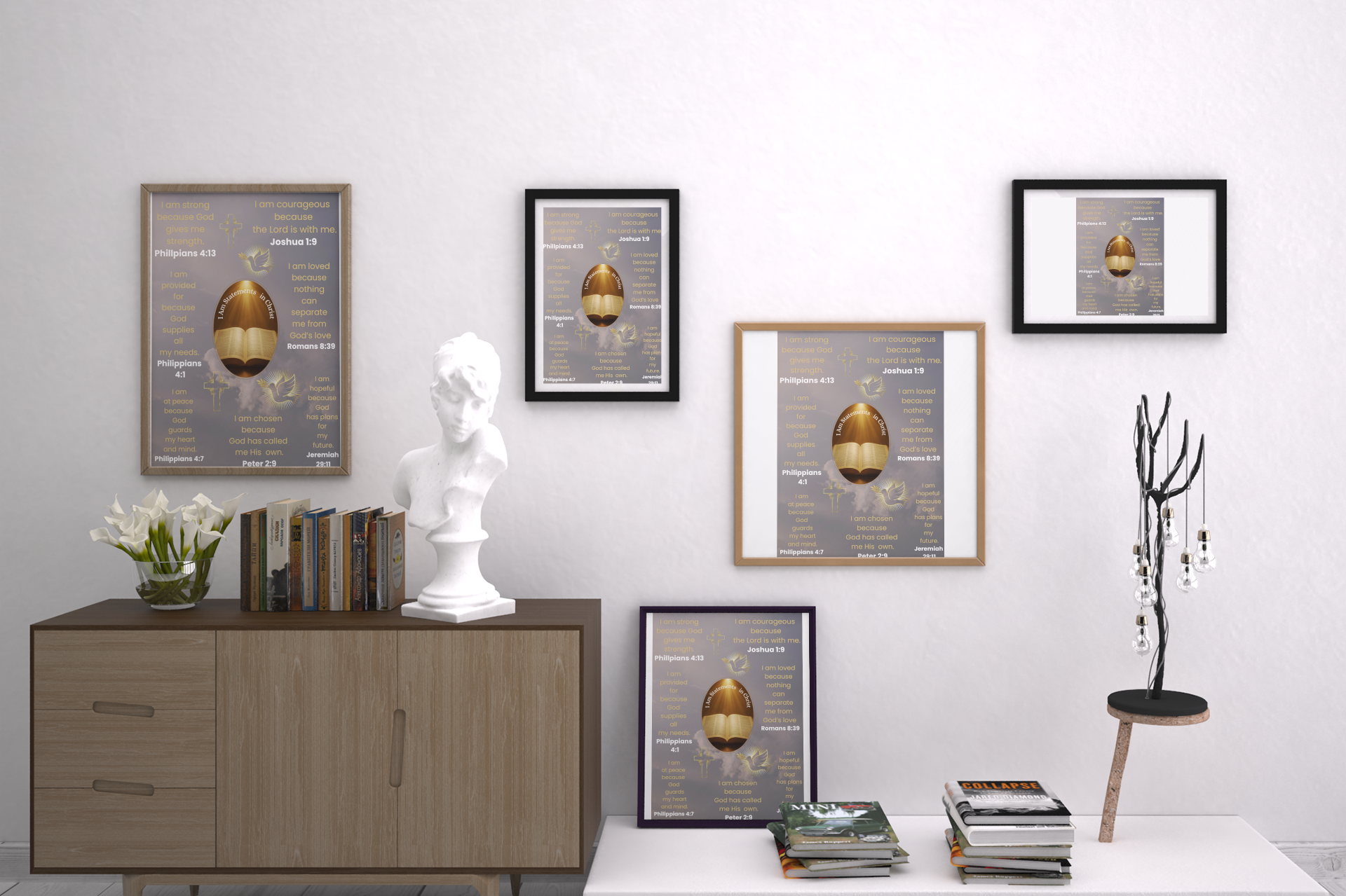 A powerful collection of biblical affirmations declaring strength, peace, love, and purpose through God's promises. This digital download comes in two high resolution sizes:
